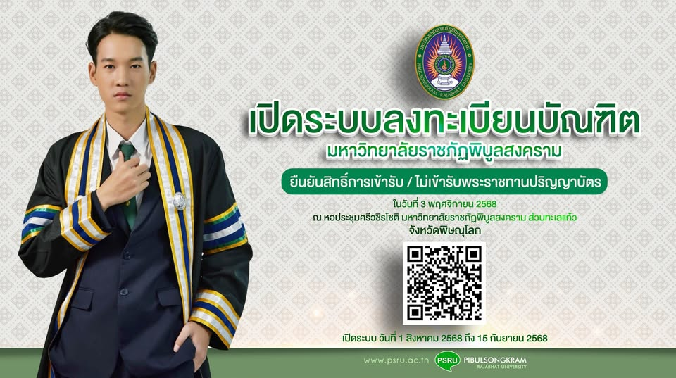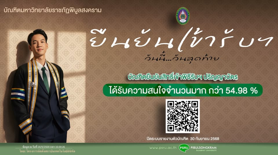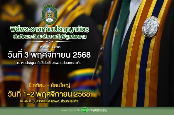 มหาวิทยาลัยราชภัฏพิบูลสงคราม เตรียมความพร้อมพิธีรับพระราชทานปริญญาบัตร ประจำปี 2568 October 14, 2025 อ่านเพิ่มเติม »
