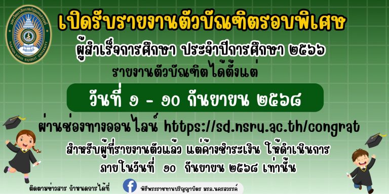 เปิดระบบรายงานตัวบัณฑิตรอบพิเศษ มหาวิทยาลัยราชภัฏนครสวรรค์