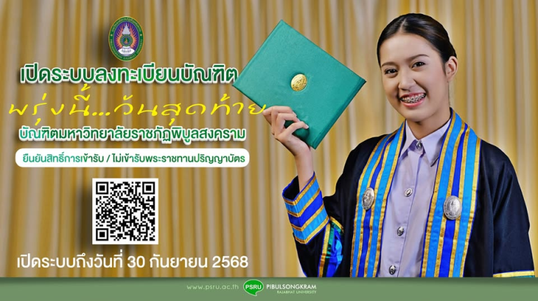 ขอให้บัณฑิตมหาวิทยาลัยราชภัฏพิบูลสงคราม ตรวจสอบรายชื่อผู้มีสิทธิ์เข้ารับฯ ปริญญาบัตร https://shorturl.asia/OH5JE